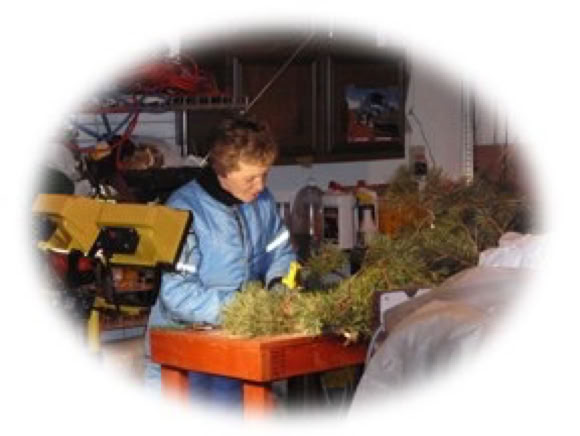 All wreaths are decorated with various colors of bows, pine cones and berries.